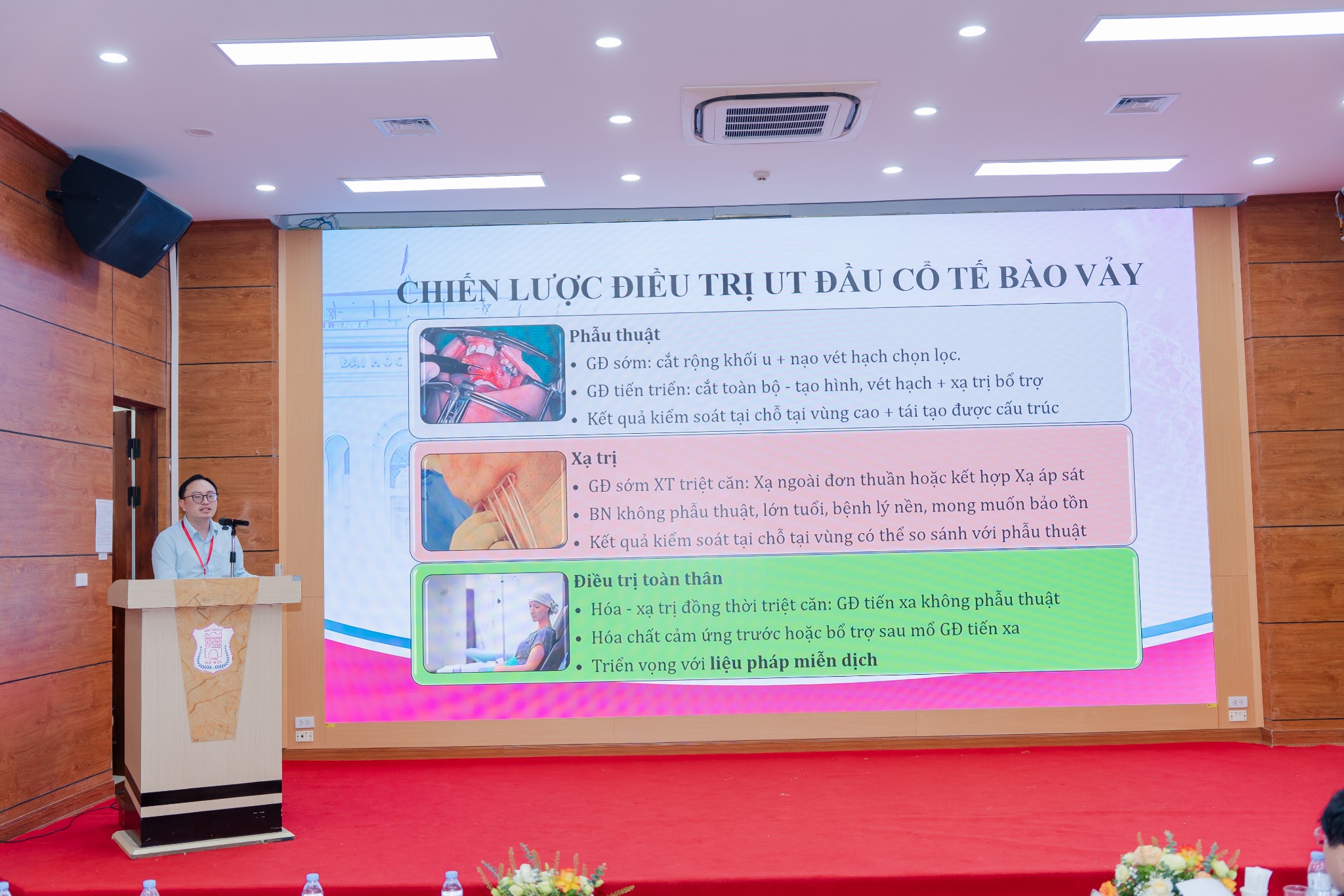 Hội thảo đã cập nhật về xu hướng xạ trị kết hợp miễn dịch trong điều trị ung thư hiện nay, được coi là hướng đi triển vọng để tối ưu hóa hiệu quả. Liệu pháp kết hợp này đặc biệt chú trọng trong nhóm tái phát di căn và chiến lược xuống thang trong điều trị ung thư vùng đầu cổ.